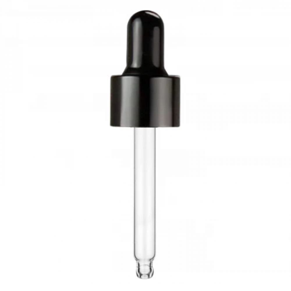 Піпетка косметична з ковпачком чорна з гладким кільцем для флакону 10 мл