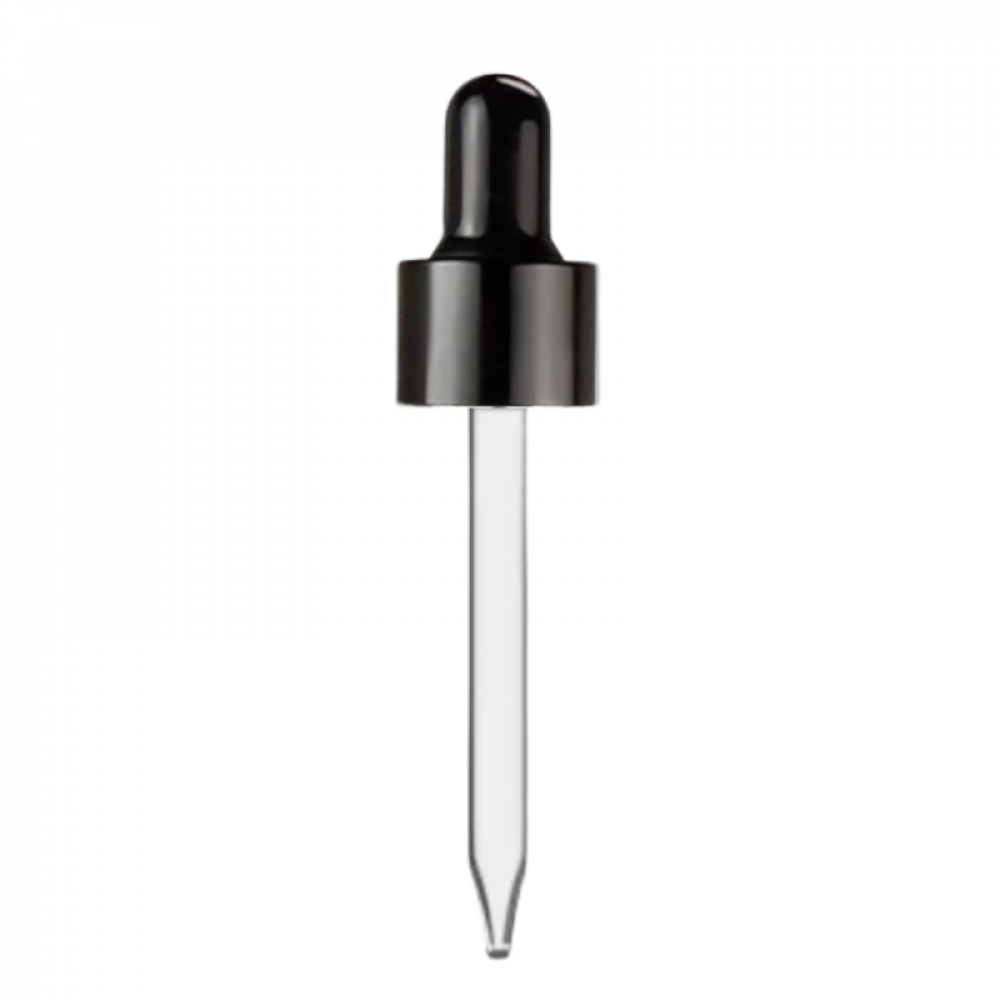 Піпетка косметична з гострим носиком з ковпачком чорна для флакона 30 мл
